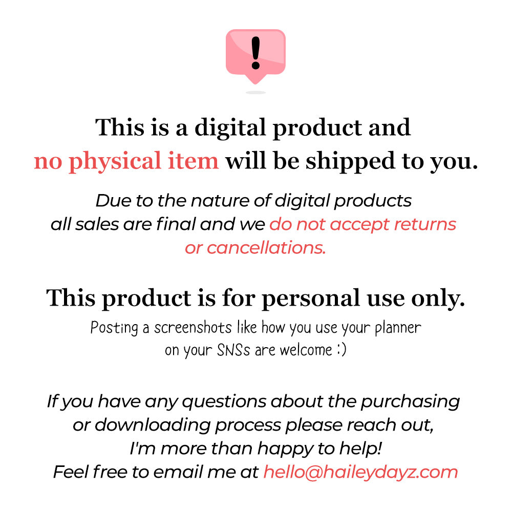 궁금한 점이 있으시면 구매 전에 hello@haileydayz.com 로 이메일주세요 :)