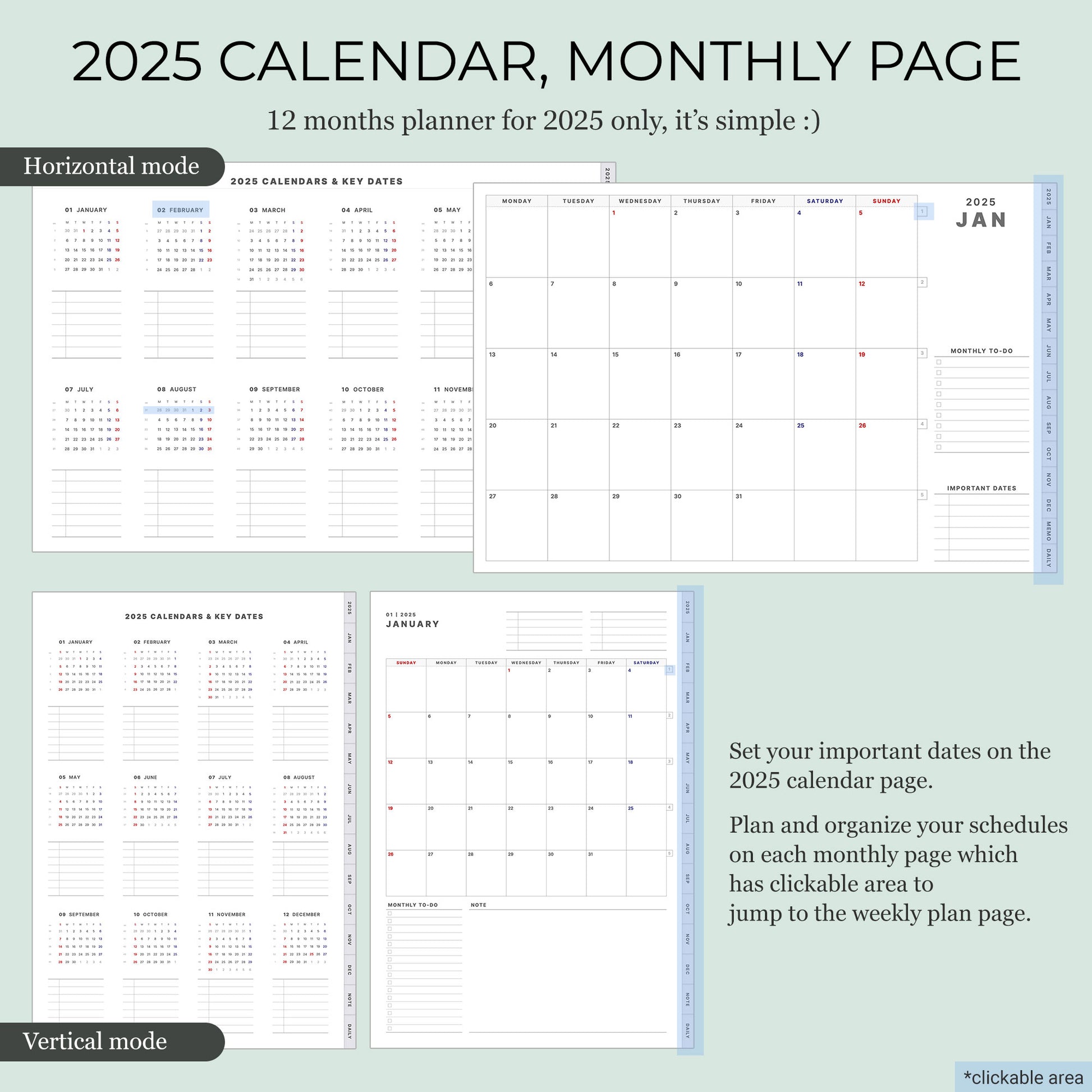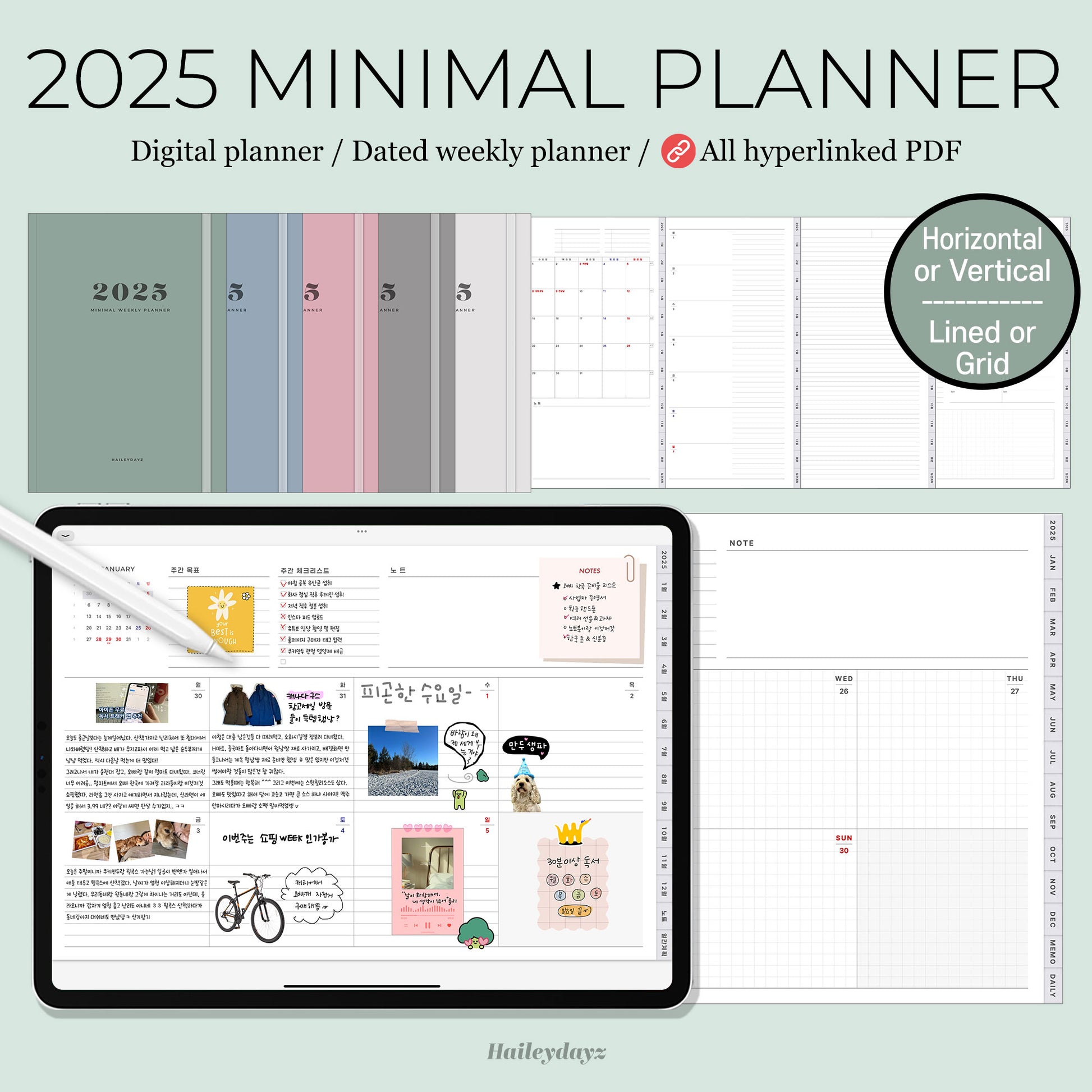 2025 미니멀 위클리 플래너가 가로형 또는 세로형 스타일로 출시되었습니다.