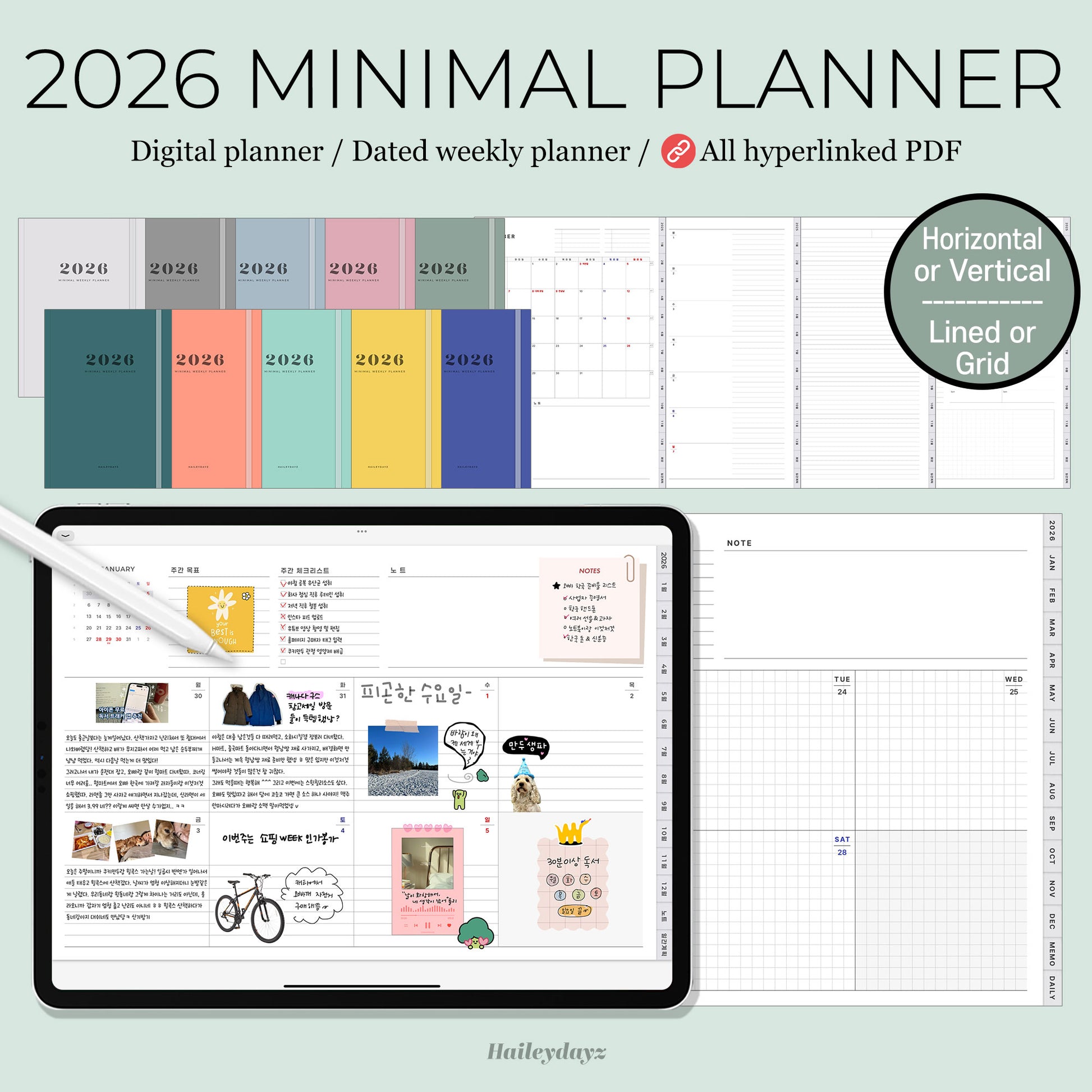 The 2026 Minimal Weekly Planner is versatile, offering both horizontal and vertical modes as well as the choice between grid and lined note styles.